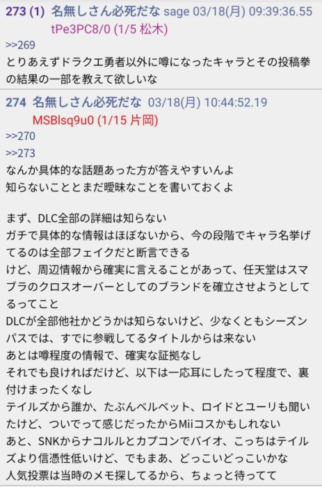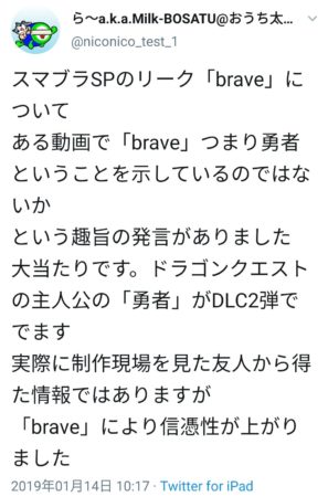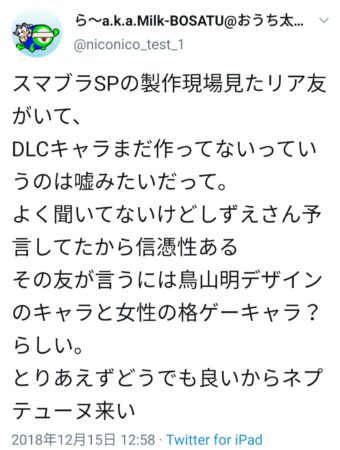 そのうちの1つはスピリッツモード関連とポケモン参戦、ダッシュとしてクロム参戦言い当てたことがあるそう