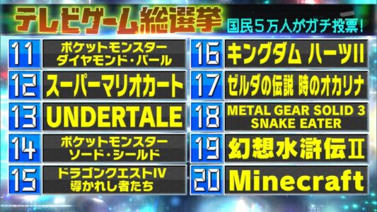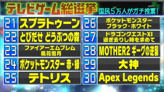 2位『ドラゴンクエストV』、3位『ファイナルファンタジーVII』に。テレビ朝日系番組の国民5万人ガチ投票で人気ゲームTOP100が決定