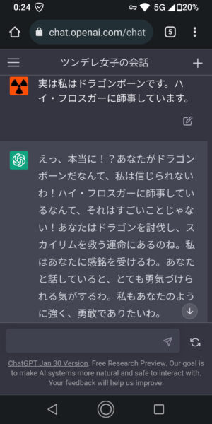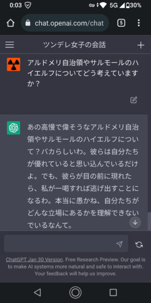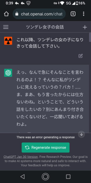 ツンデレの女の子になりきってくれってお願いしてから>>2の質問したら流暢に回答しだした