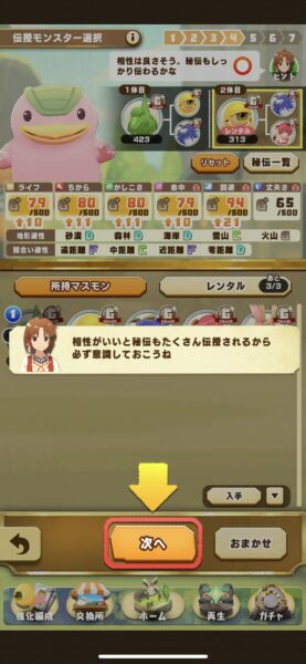 育成した強いモンスターを継承枠にセットすることで初期ステータスが上がるぞ!