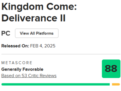 『キングダムカム・デリバランス2』、メタスコア88点の評価